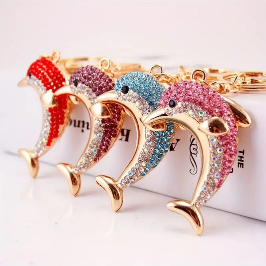 🌟Rhinestone Dolphin Keychain Metal Key Ring, Bag Charm, Car Accessory