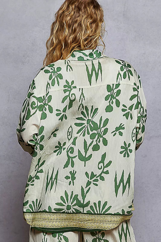 POL Floral Pattern Buttoned Long Sleeves Chest Pocket Relaxed Fit Shirt | Ivory