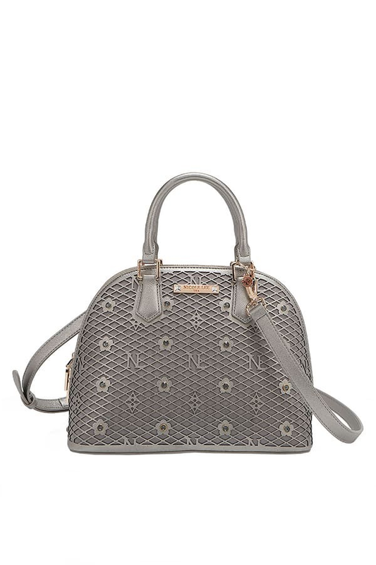 Nicole Lee USA Gracie Flower Pattern Pocket Vegan Leather Dome Satchel