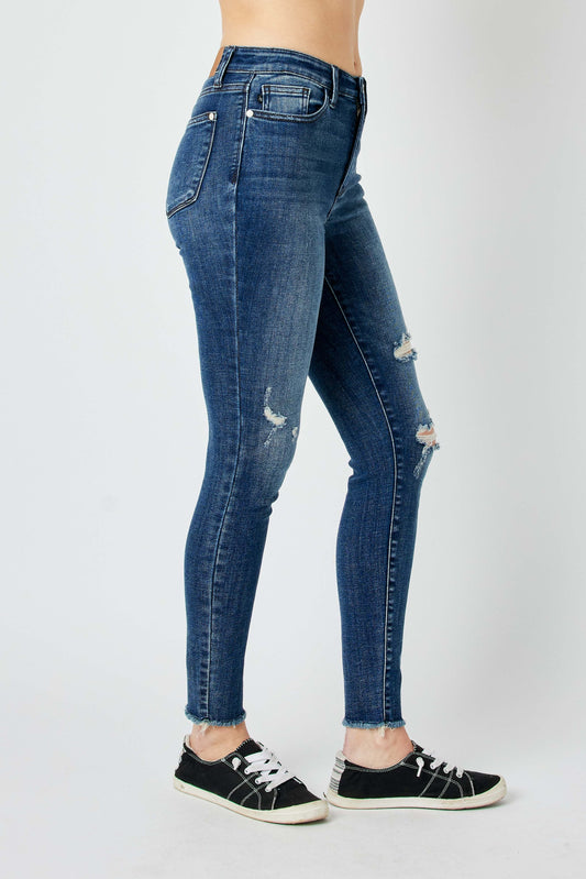 Judy Blue High Waist Distressed Raw Hem Zip Fly Dark Washed Skinny Denim Jeans