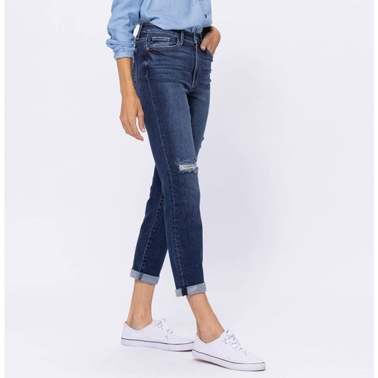 🎀Judy Blue Avery High Rise Distressed Cuffed Boyfriend Denim Jeans | Size 3(26)