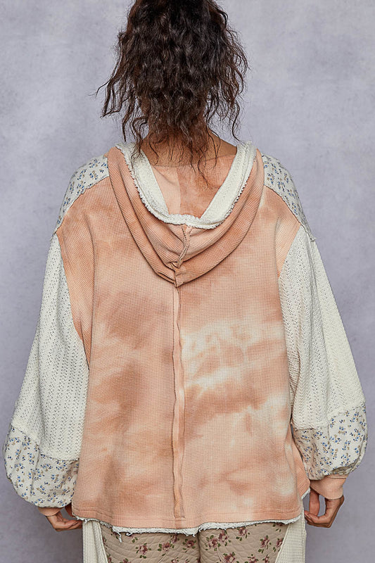 BiBi Waffle Thermal And Terry Mix Washed Zip Up Hoodie