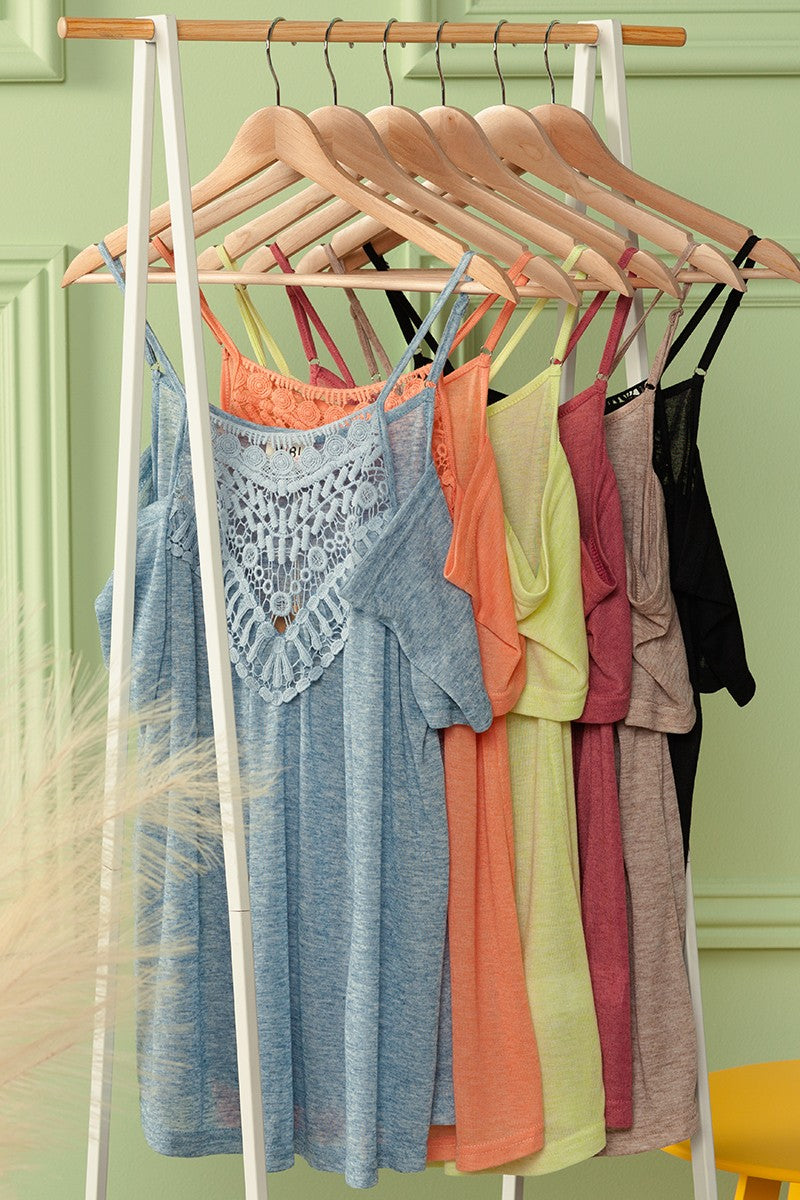 Add a touch of elegance to your wardrobe with this Front Crochet Lace Adjustable Strap Top. This stylish top features intricate crochet lace detailing on the front, giving it a feminine and romantic vibe. The adjustable straps allow for a customizable fit, ensuring comfort and versatility. Perfect for both casual and dressy occasions, this top can be dressed up with a skirt or dressed down with jeans for a versatile look. Elevate your outfit with this chic top that exudes charm and sophistication, making it a must-have piece in your collection.