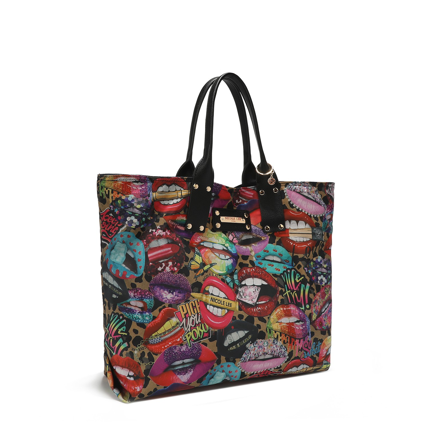 Nicole Lee USA Alessandra Vegan Leather Handle Zip Pocket Reversible Shopper Bag